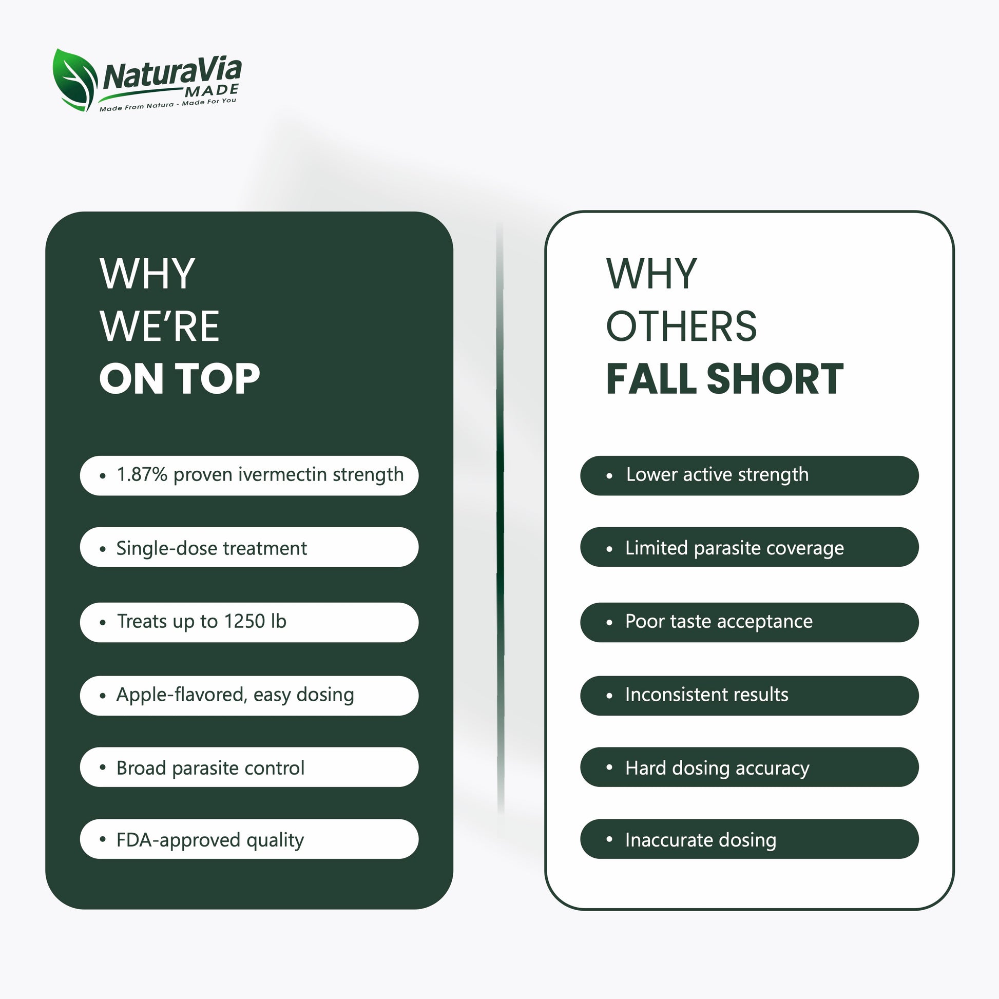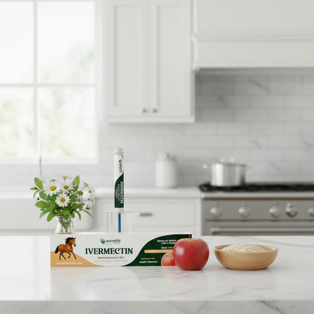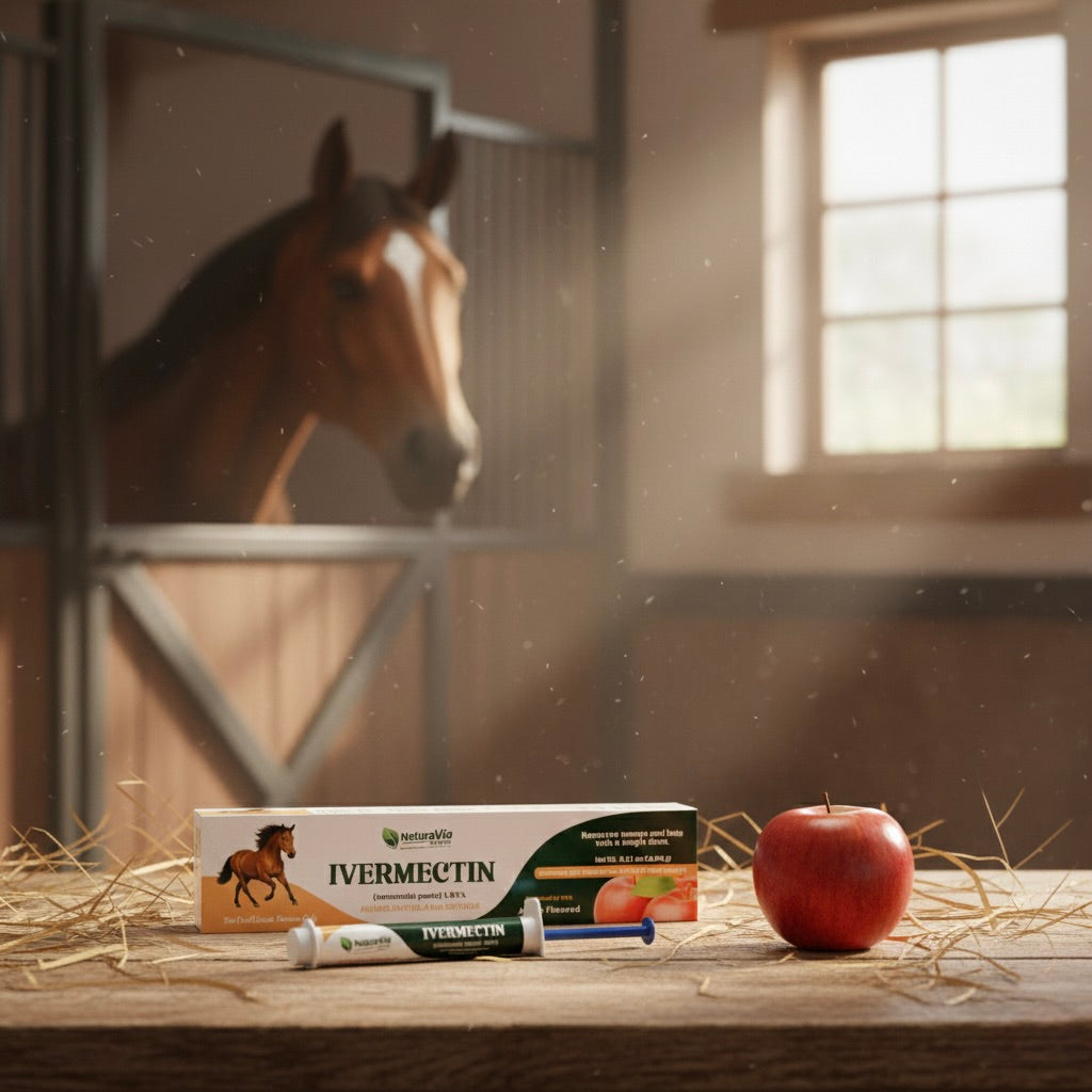 NaturaVia Made Ivermectin Horse Paste 1.87% is a premium, broad-spectrum equine dewormer formulated for safe, fast, and effective parasite control. Each 6.08g calibrated syringe delivers 1.87% ivermectin, trusted by veterinarians to target and eliminate internal parasites including small and large strongyles, pinworms, bots, and ascarids.