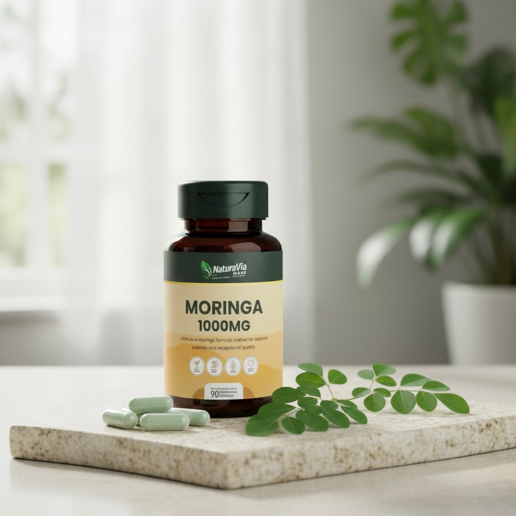 NaturaVia Made Organic Moringa Capsules bring the nutrient-packed power of the “Miracle Tree” into a convenient daily supplement. Each serving delivers 1000mg of pure organic moringa leaf powder extract, supporting energy, immunity, digestion, skin health, and overall vitality.